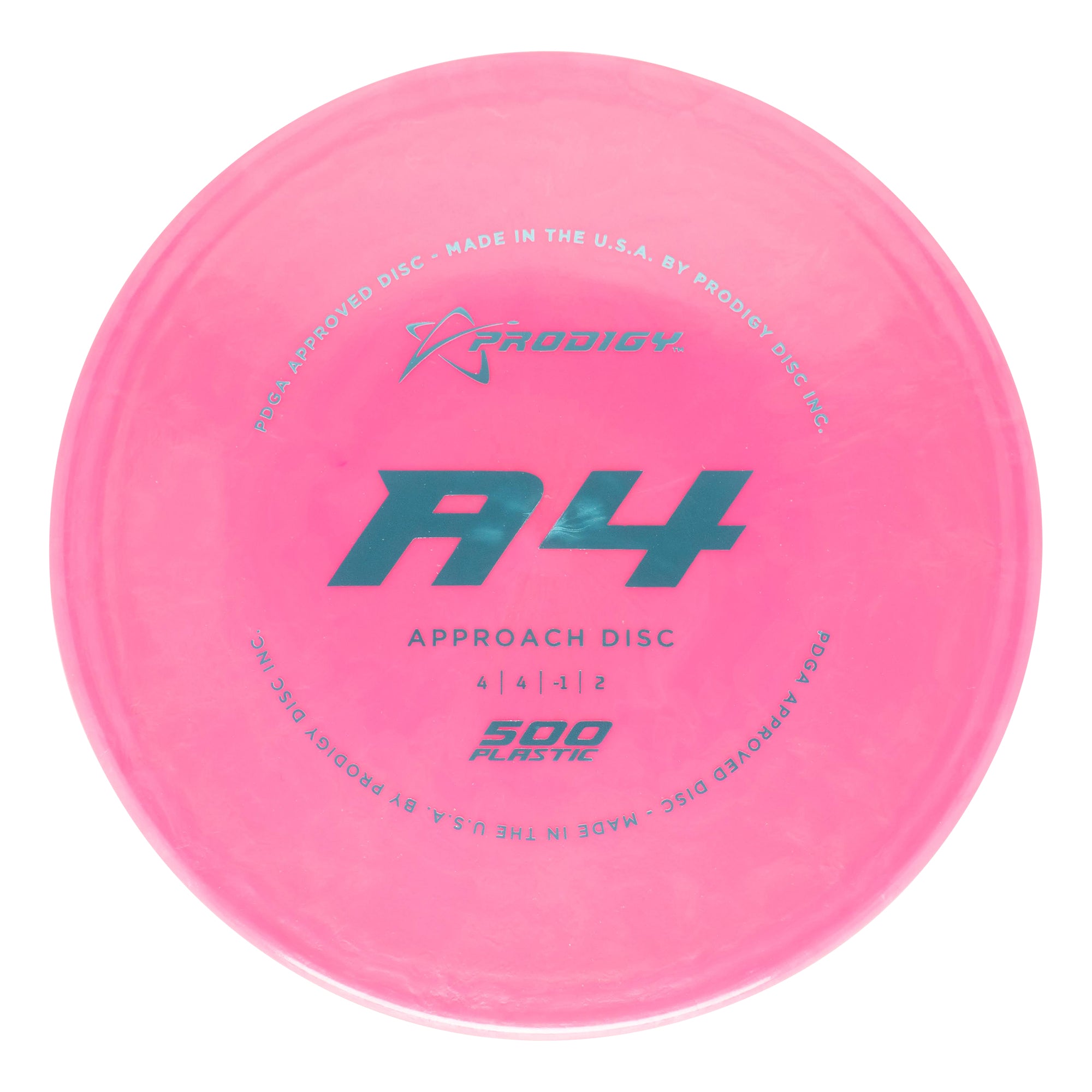 The Prodigy Disc A4 is the latest in our range of approach discs. The A4 is a slightly over stable disc that fills the distance gap between midranges and putters and is designed for all skill levels. The disc is consistent and reliable in moderate wind conditions and perfect for short approach shots. It works equally as well for backhand or sidearm throwers. The A4, like the A3 has a bead on the rim. You can expect it to fly slightly less stable than the A3 with an extra 40-50 feet in distance.